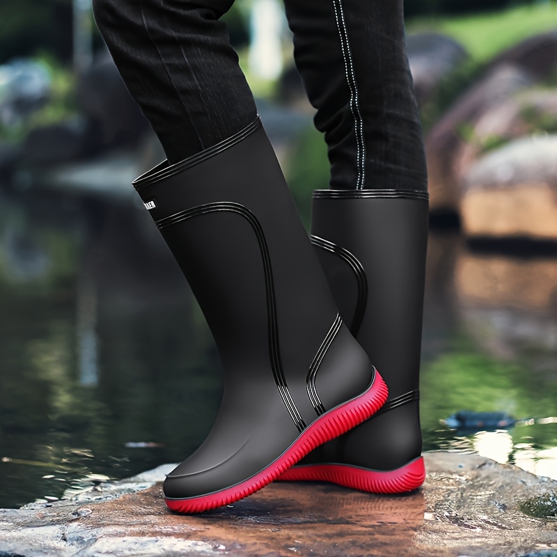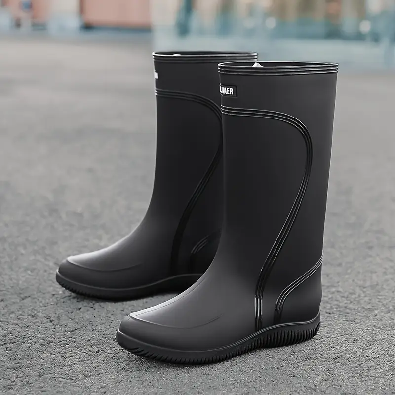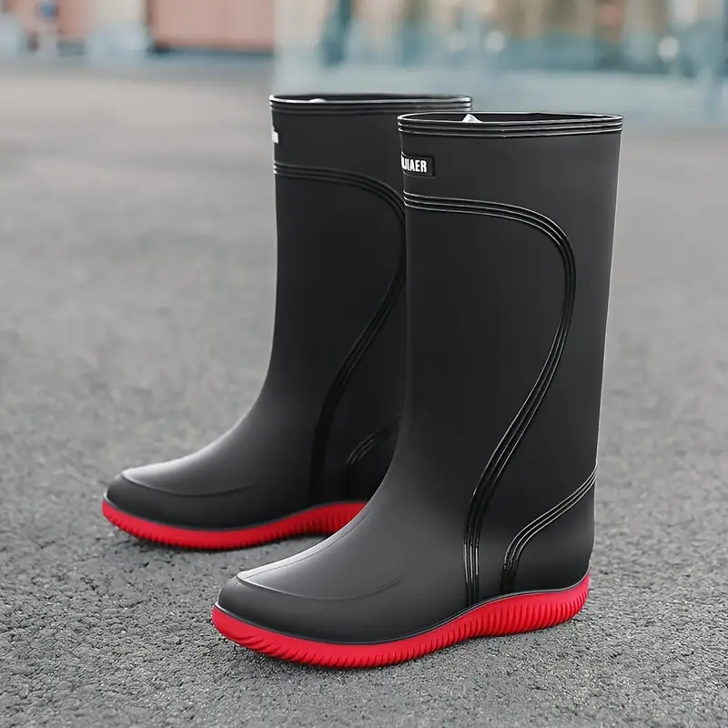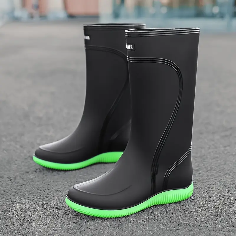 • Bottes de pluie en PVC à bout haut, elles montent à mi-mollet pour une meilleure protection contre les éclaboussures.
