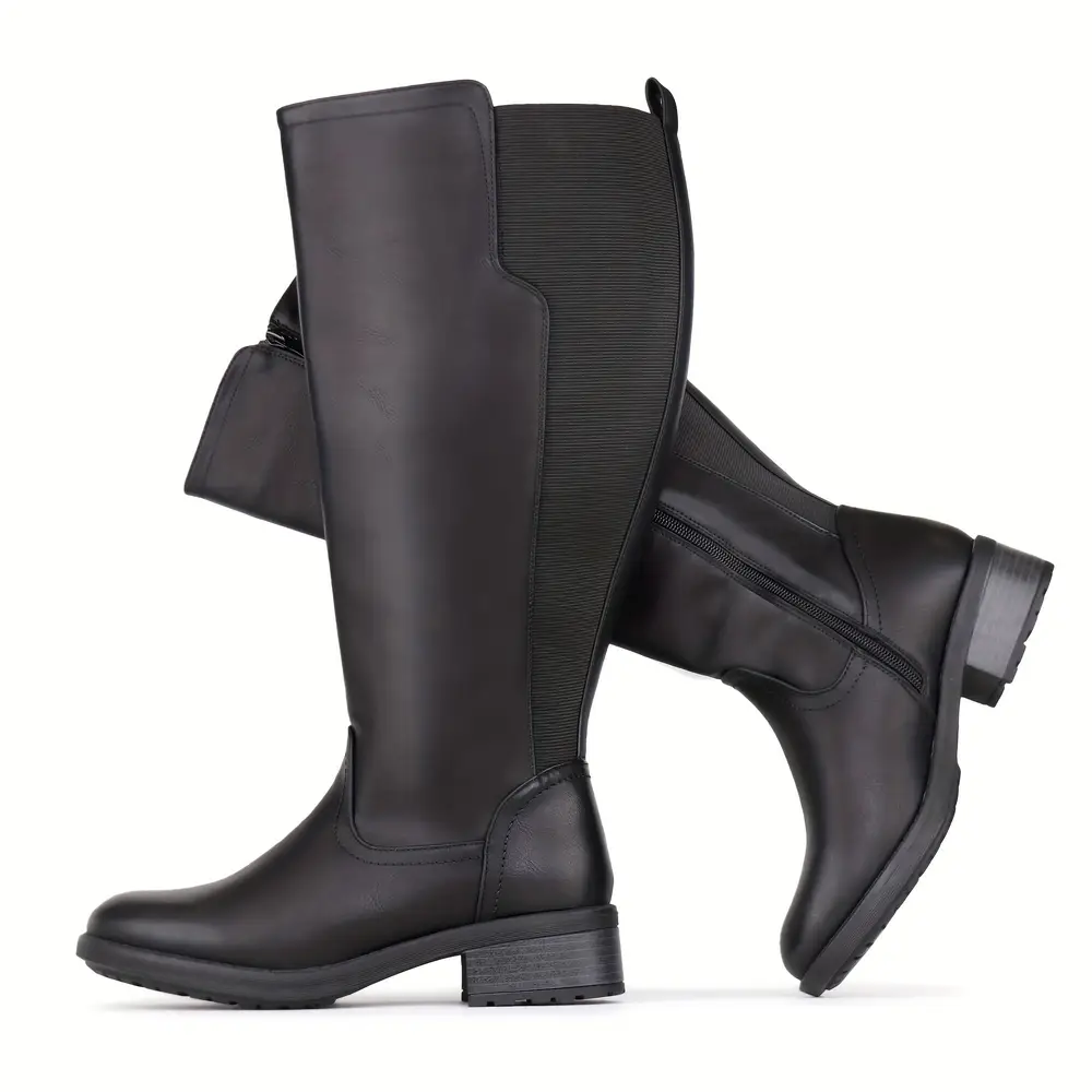 Bottes femme à tige haute en simili cuir extensible – confort mollets larges