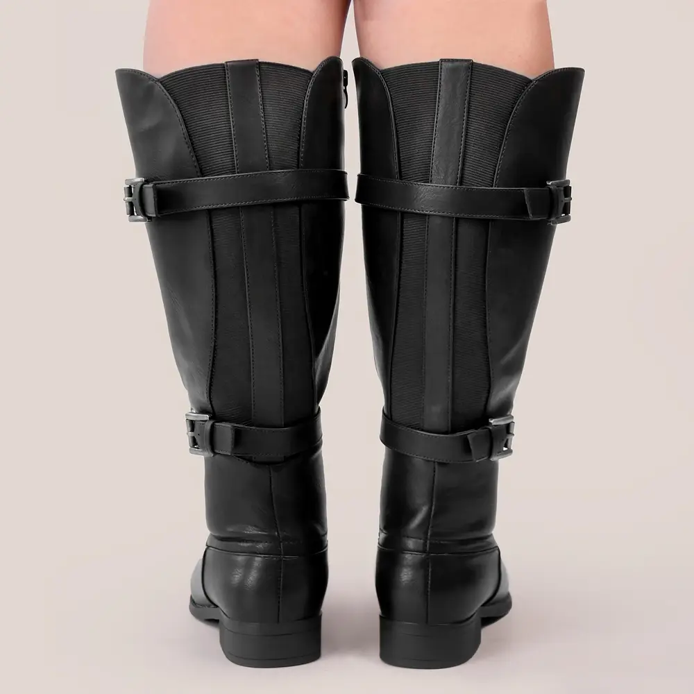 • Conçues pour les mollets généreux, ces bottes offrent un ajustement confortable et stylé jusqu’aux genoux