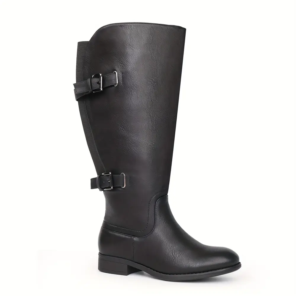 Bottes femme à tige large en simili cuir – bout rond, talon épais, style élégant