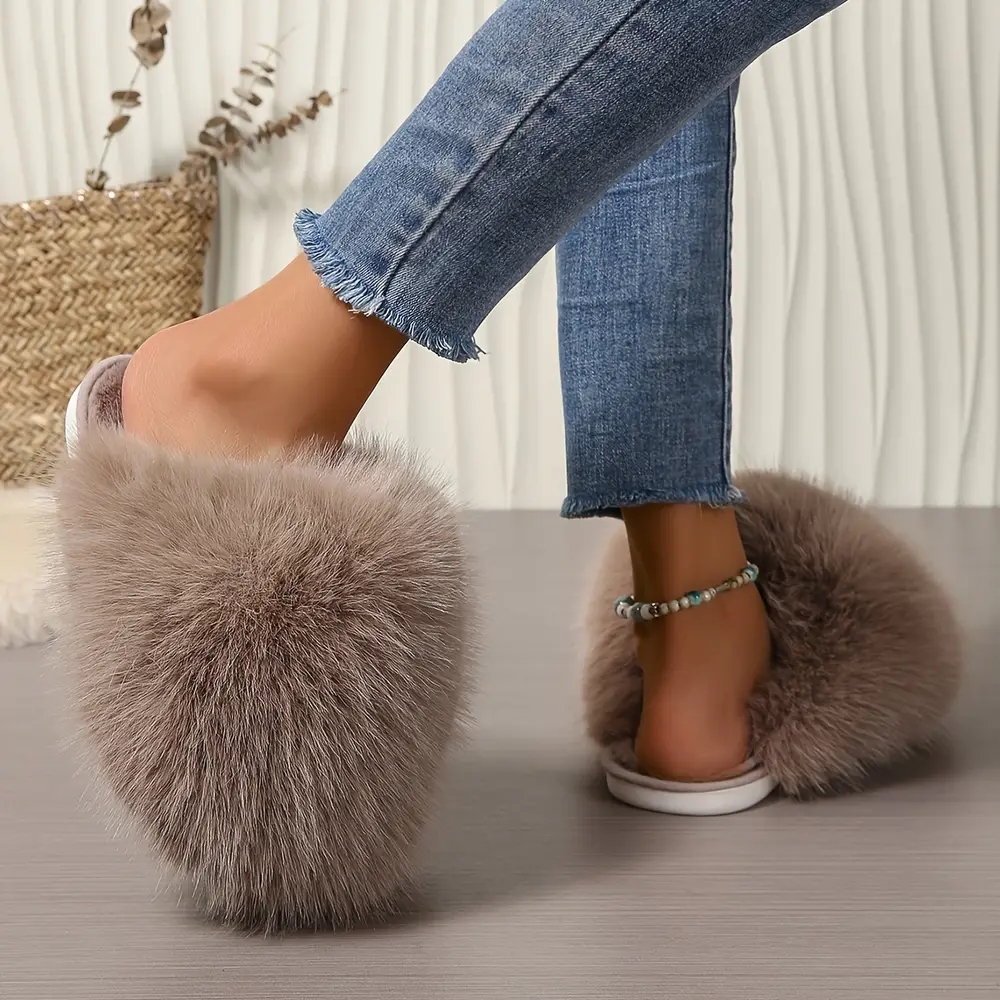 Chaussons femme en fausse fourrure douce – pantoufles d'intérieur confortables