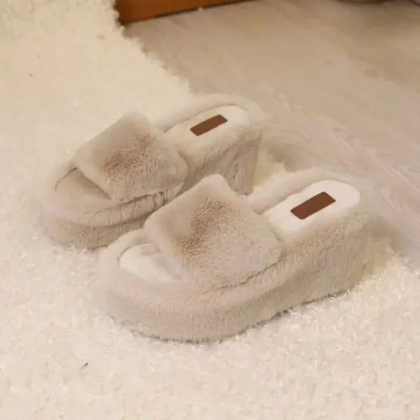 Chaussons femme en fausse fourrure avec semelle plateforme épaisse antidérapante