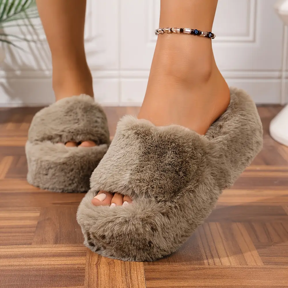 Chaussons femme en fausse fourrure douce – semelle épaisse confort intérieur