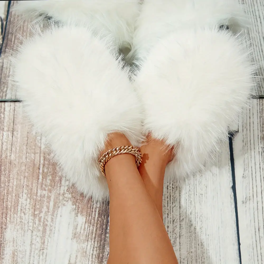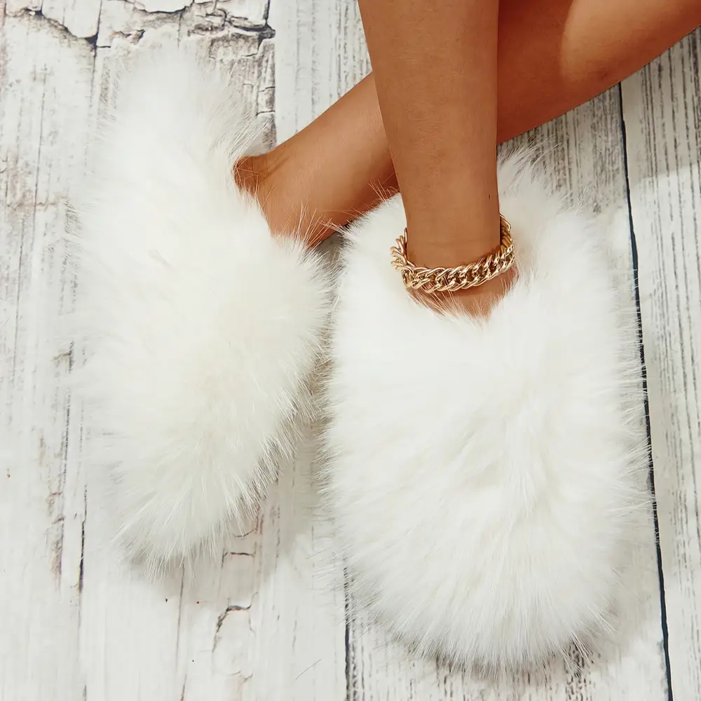 Chaussons femme en fourrure synthétique douce – semelle EVA antidérapante intérieur