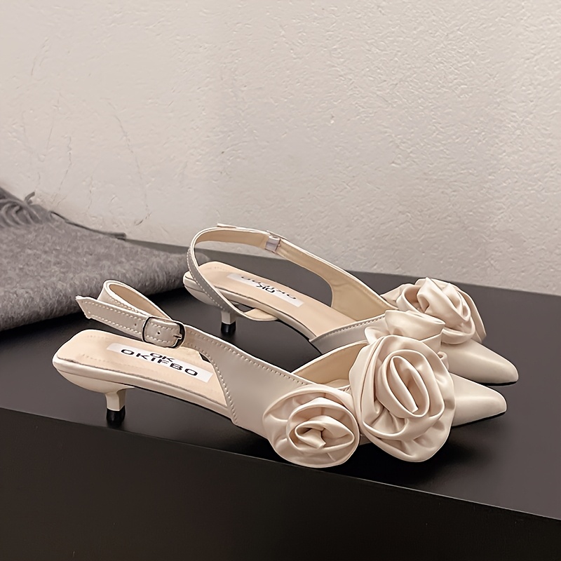 Sandales mariage femme à talon moyen – bout pointu, volants floraux, confortables