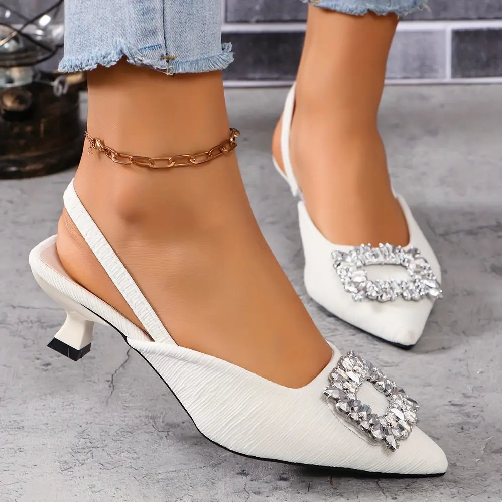 Sandales à petit talon pour mariage femme – bout pointu et strass élégants