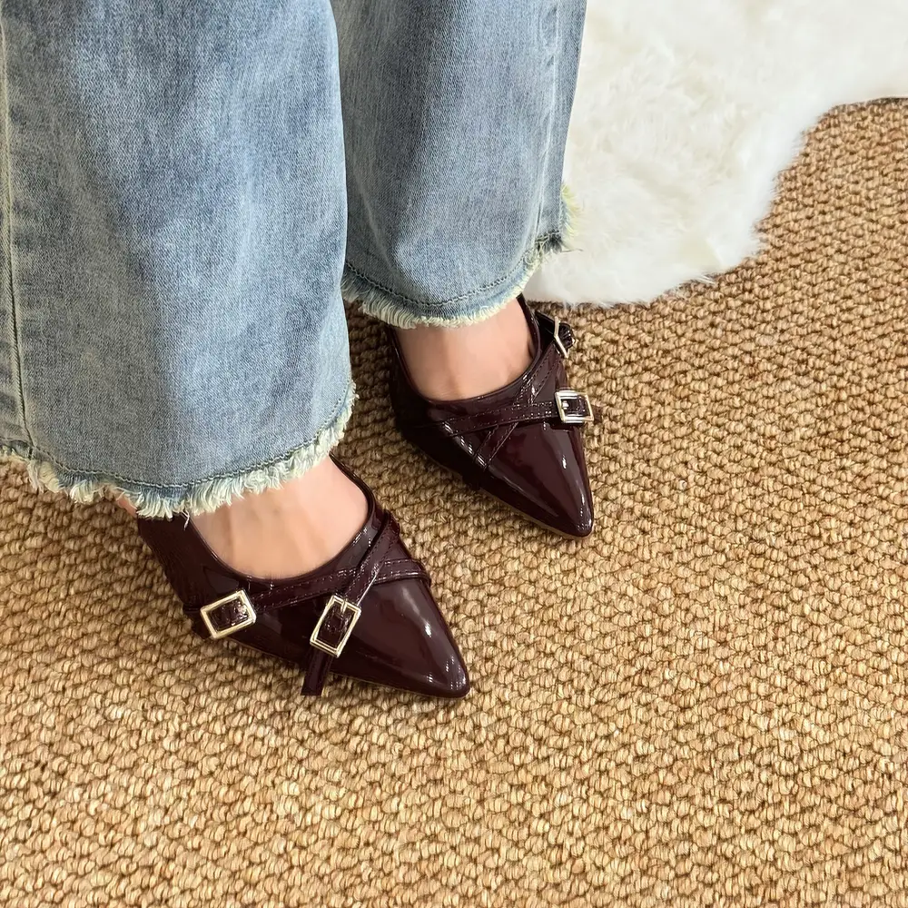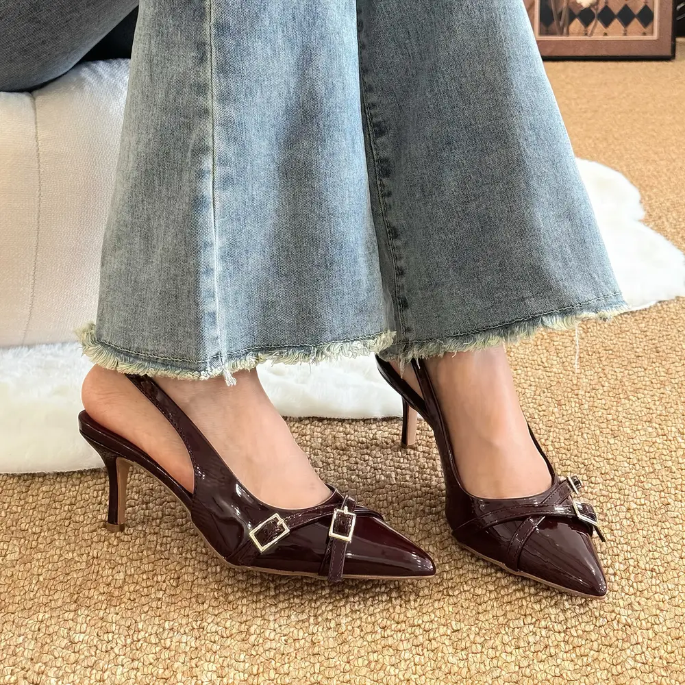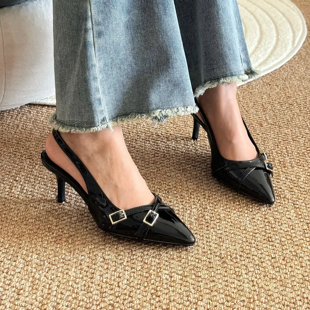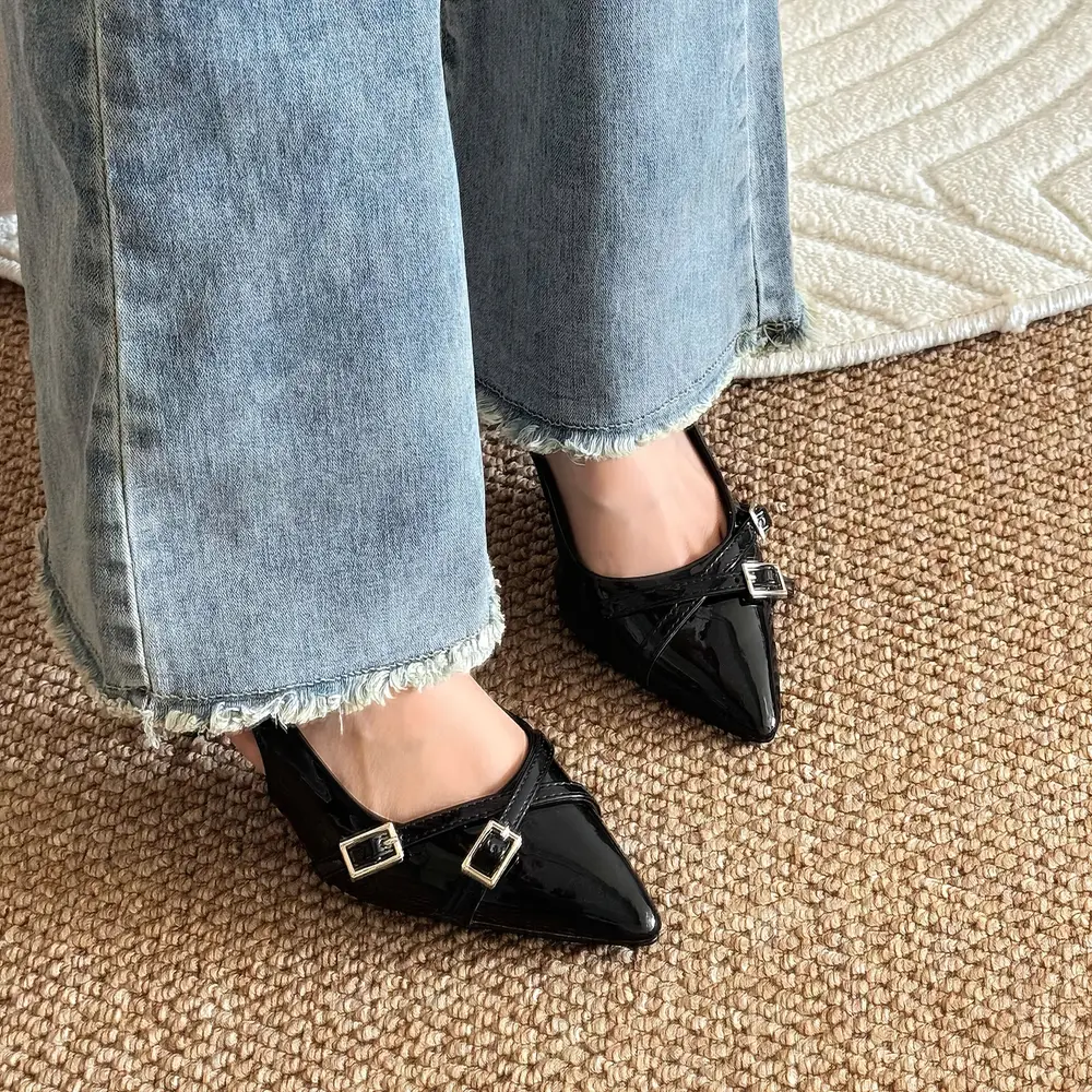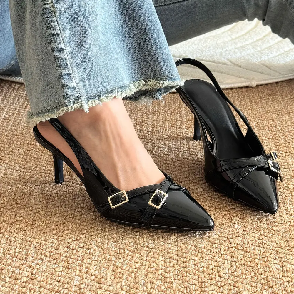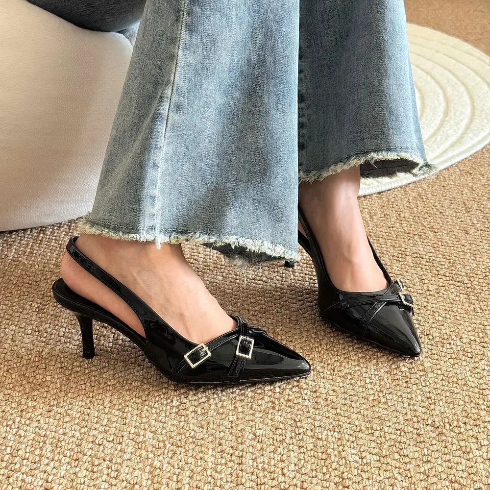 • Le design à bout pointu et les boucles croisées apportent un look sophistiqué, idéal pour une tenue de mariage chic.