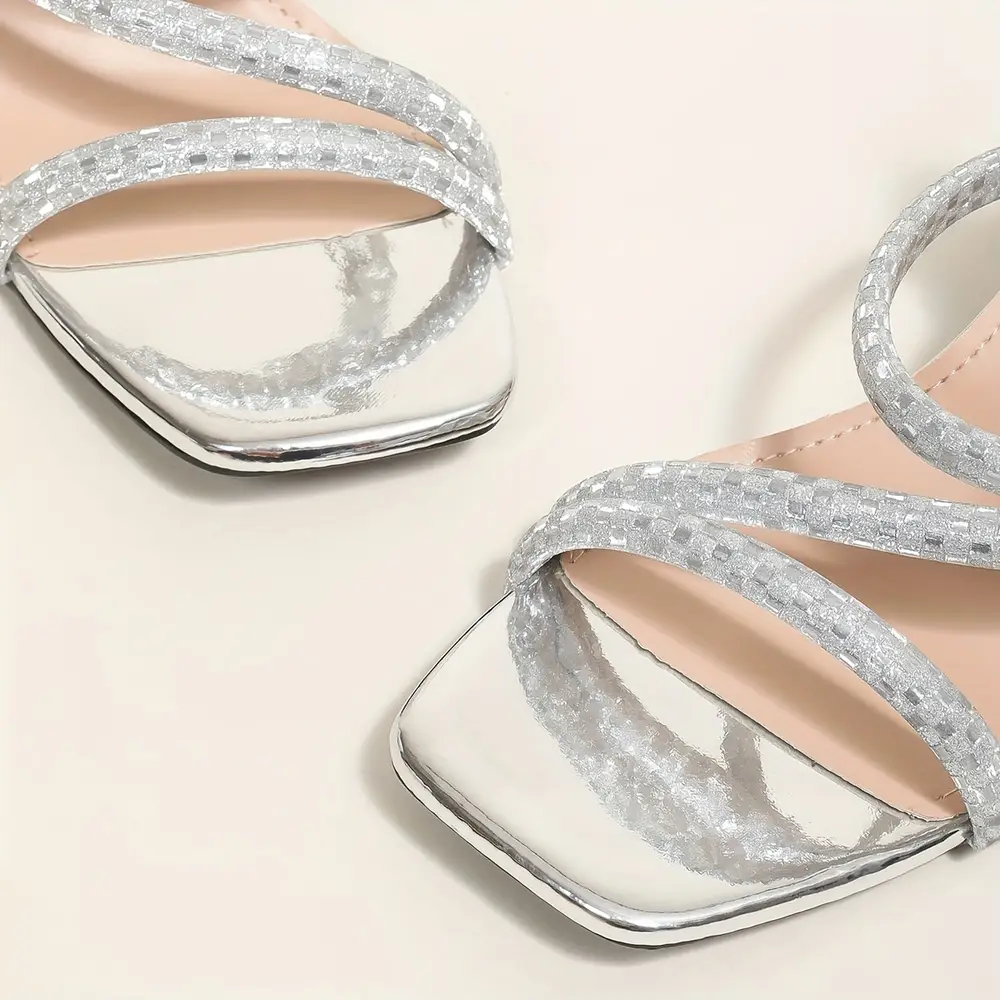 • Les lanières ornées de strass captent la lumière avec subtilité pour un aspect luxueux sans surcharge.