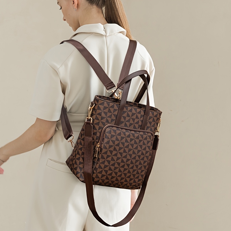Sac à dos léger convertible femme – style urbain, bandoulière amovible, motif géométrique