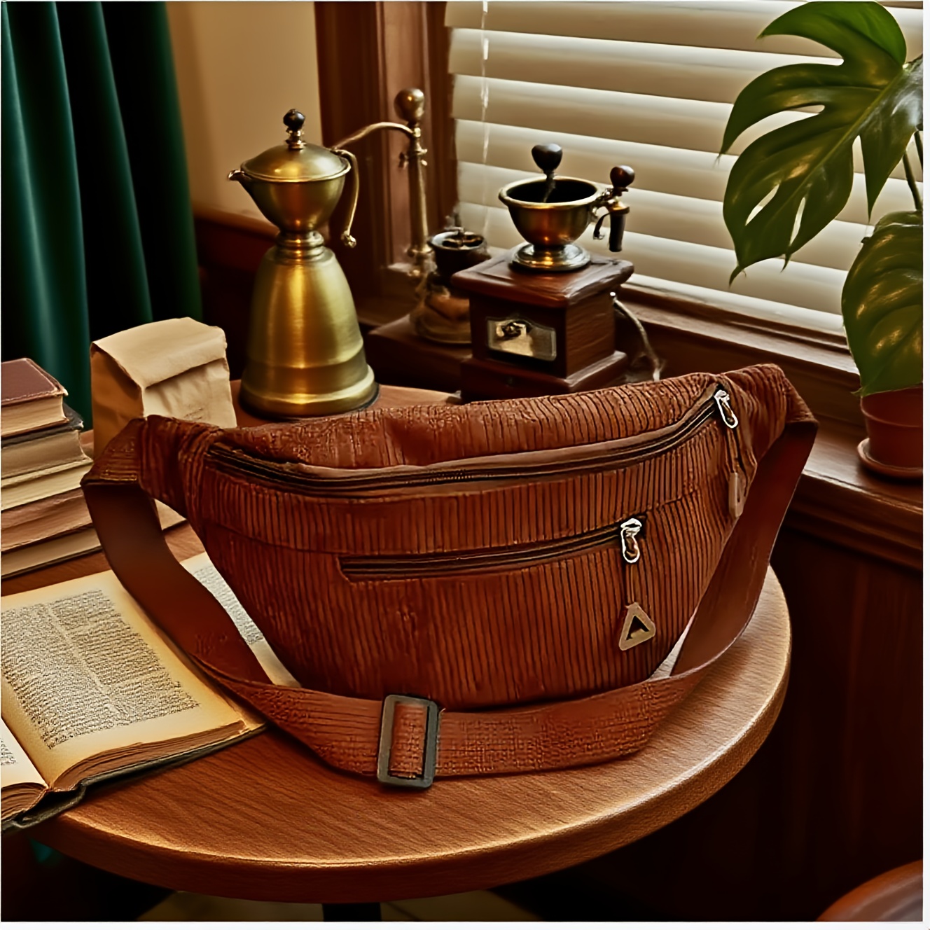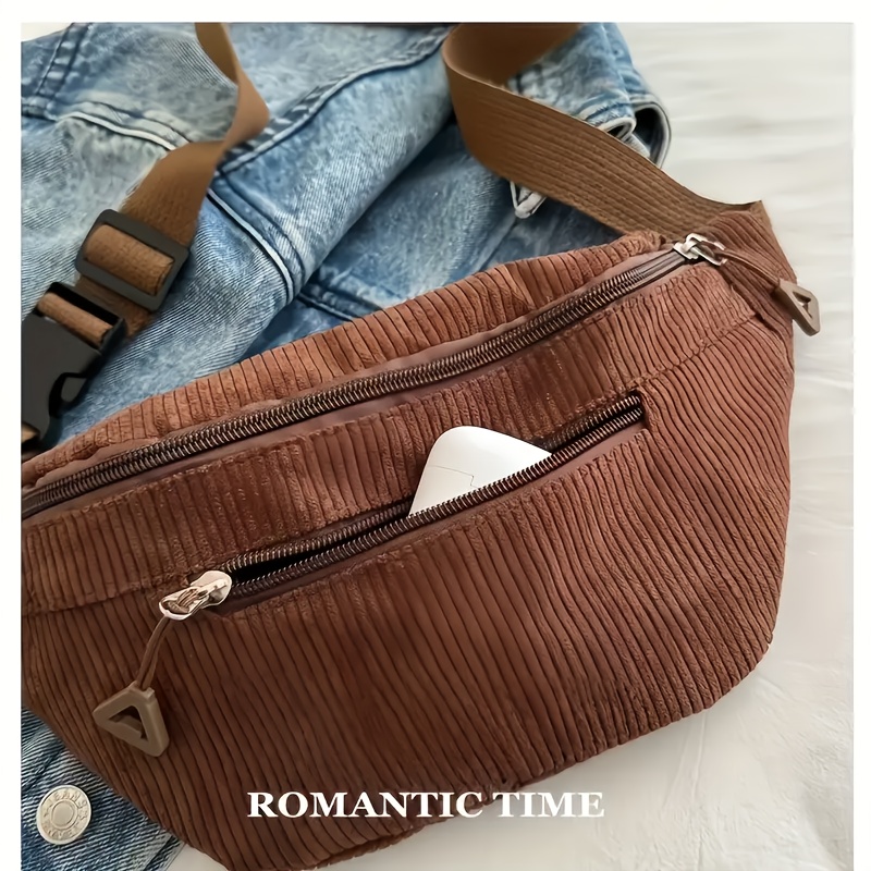 Sac banane femme en velours côtelé – style décontracté avec sangle réglable