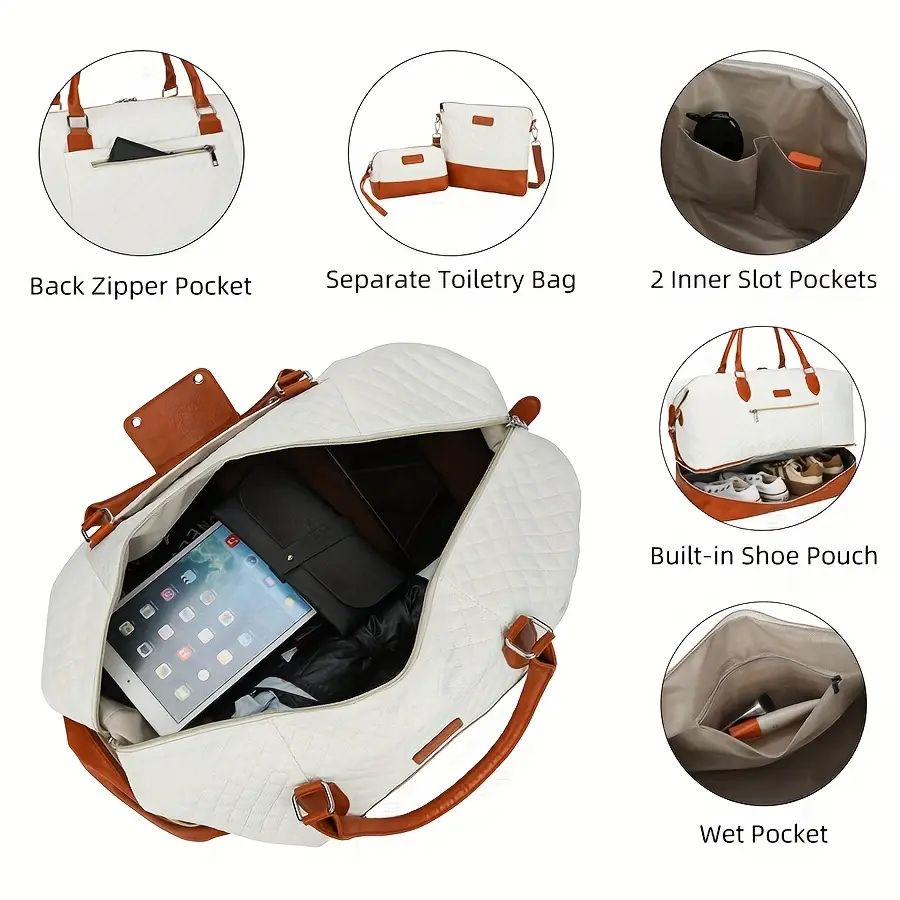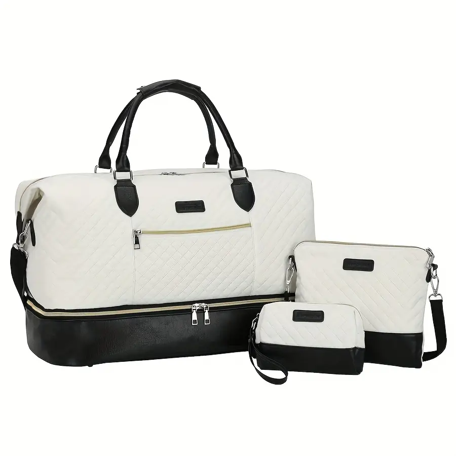 • Parfait pour un voyage court, cet ensemble sac week-end femme 3 pièces allie élégance et organisation.