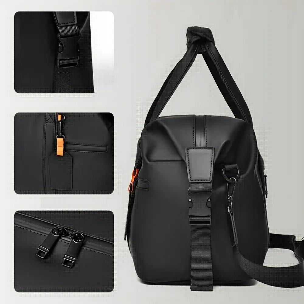 Sac week-end femme en nylon imperméable noir – bandoulière amovible renforcée